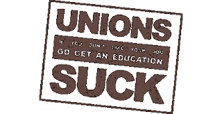 In case you’re wondering, the graphic to the right says, “UNIONS SUCK IF YOU DON’T LIKE YOUR JOB GO GET AN EDUCATION”